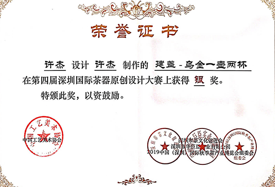 作品《建盏-乌金一壶两杯》获第四届深圳国际茶器原创设计大赛银奖